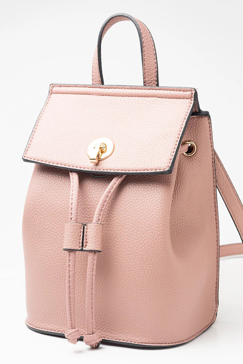 Faux-leather backpack with tie detail.