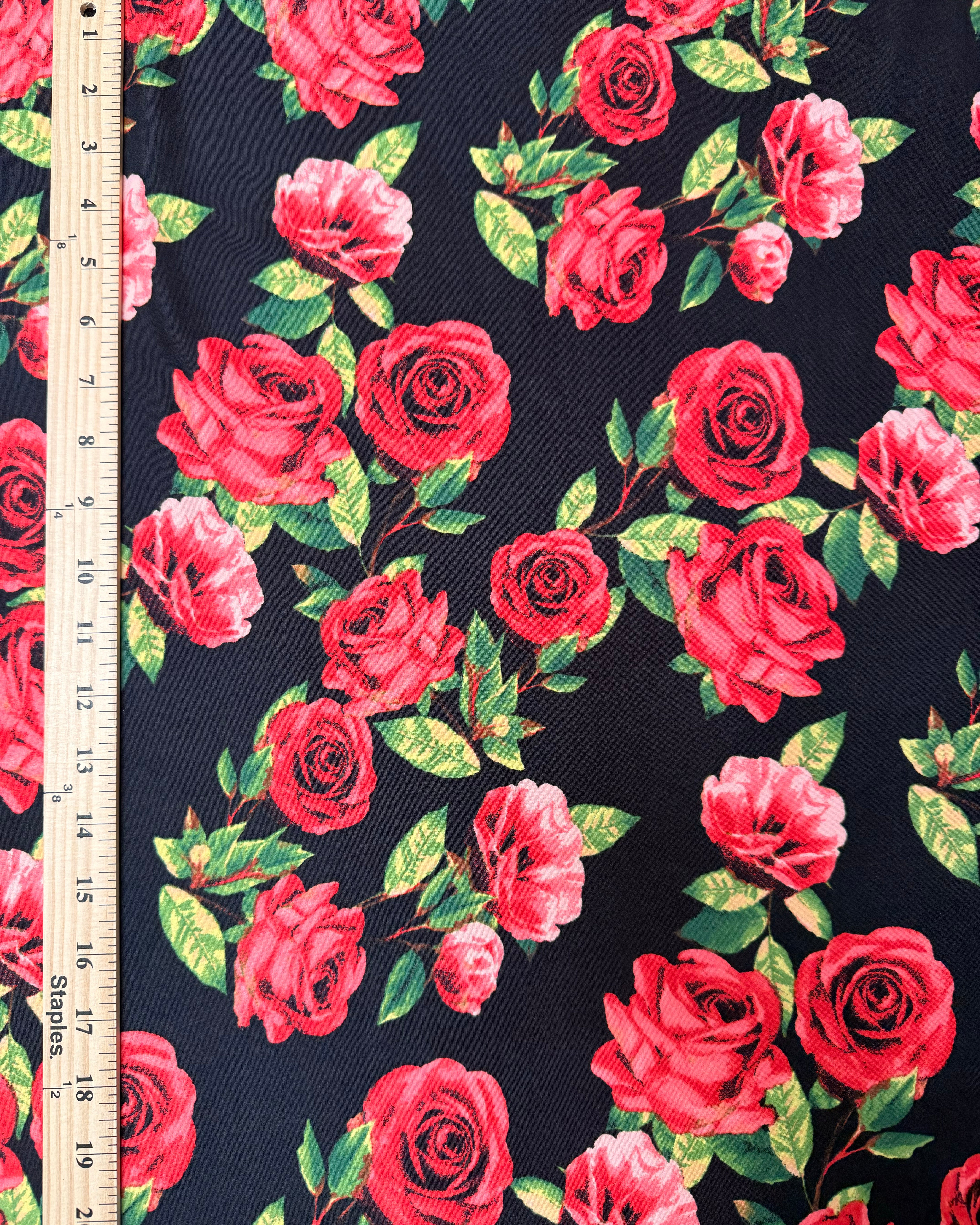 *Double Brushed Poly, commonly referred to as DBP, DTY, or ITY, is a light to medium weight fabric. This fabric is brushed on both sides, providing a soft, buttery type feel. Fabric is a blend of 96% polyester and 4% spandex, this fabric is very comfortable and soft and is great for leggings, shorts, dresses, baby clothes, etc...