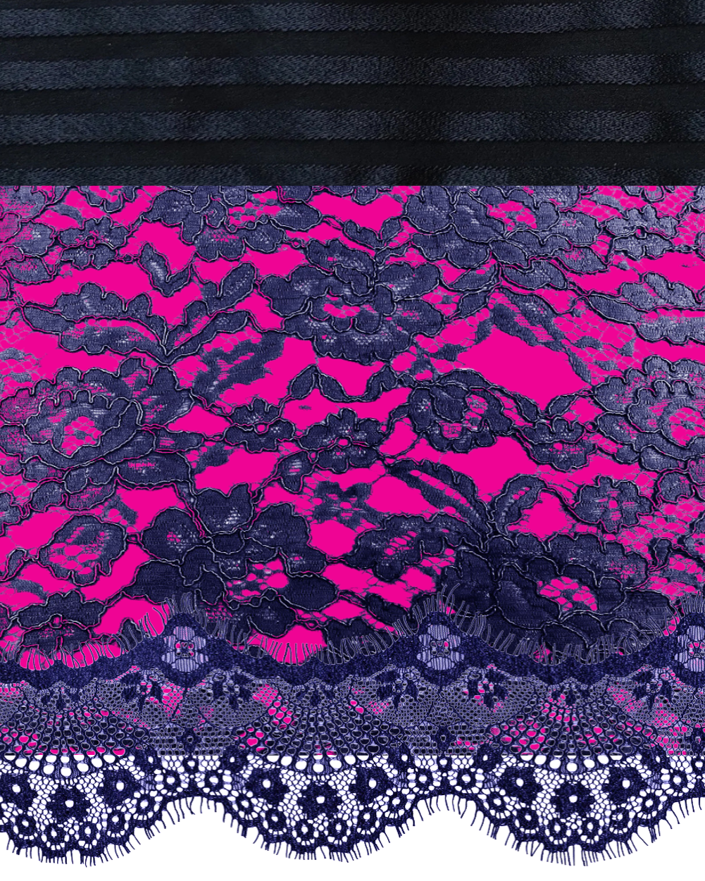 - Lace Colors: Ivory, Nude w/ Neon, Neon Coral, Navy w/ Fuchsia, Black, Purple Floral