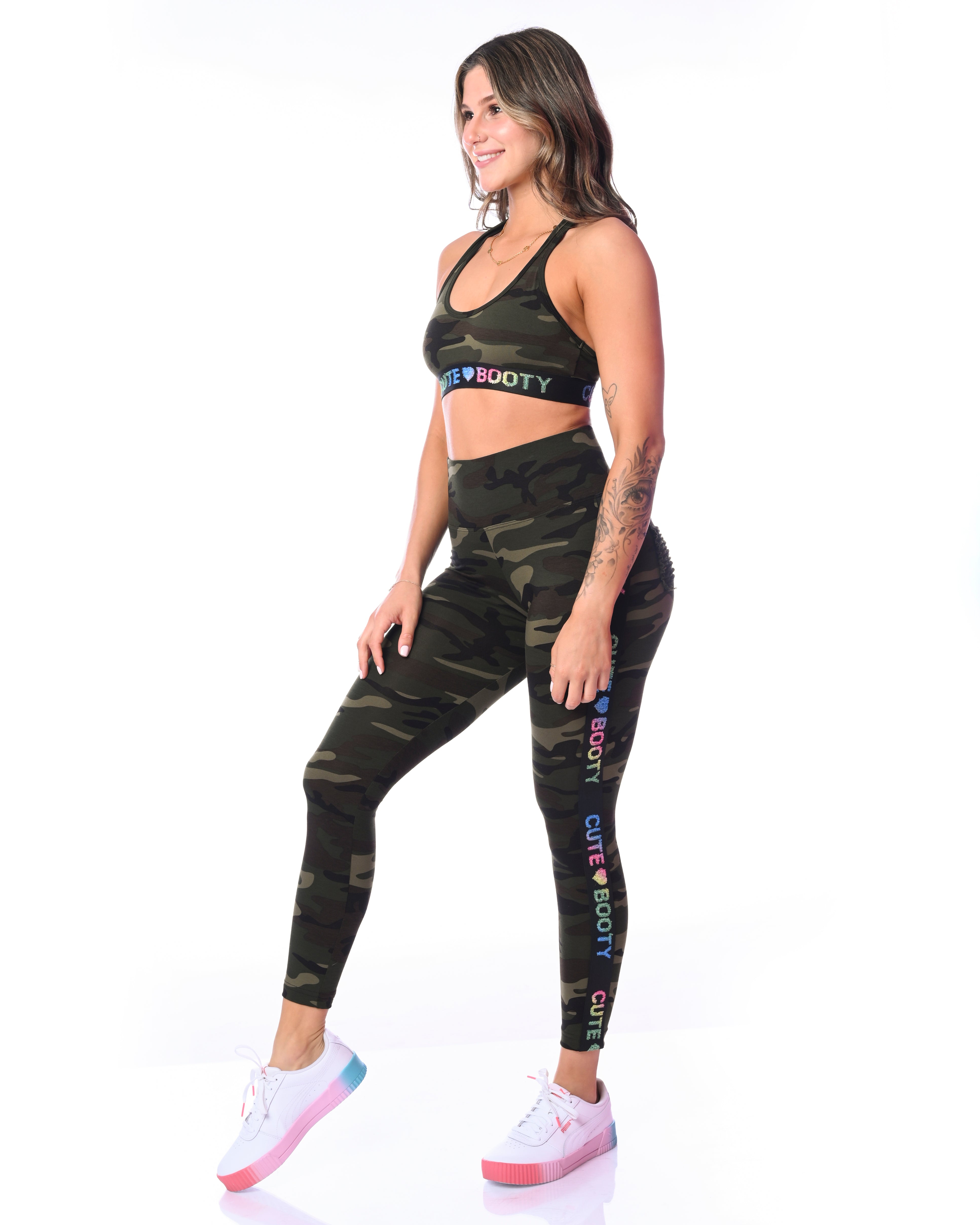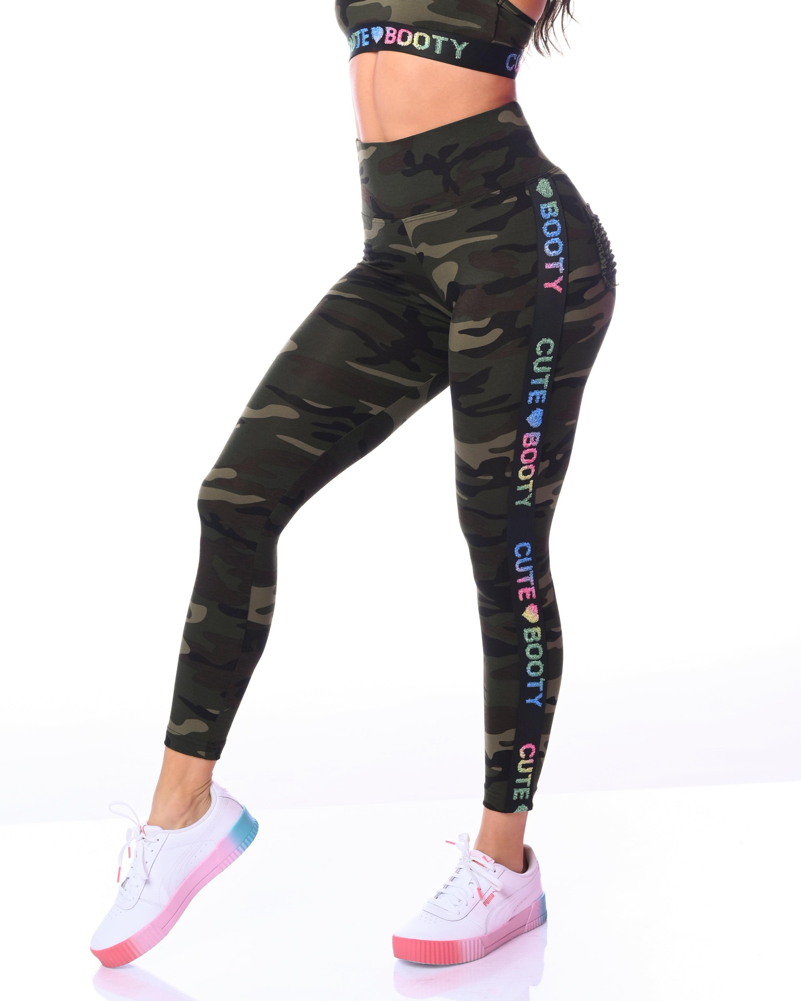 Active fashion done right, the Ombre Booty legging is a form fitting legging with rainbow logo running down the legs. Made from viscose modal fabric in Bad "A" Camo print, these ultra-flattering leggings transcend basic-gym wear. 100% Sexy