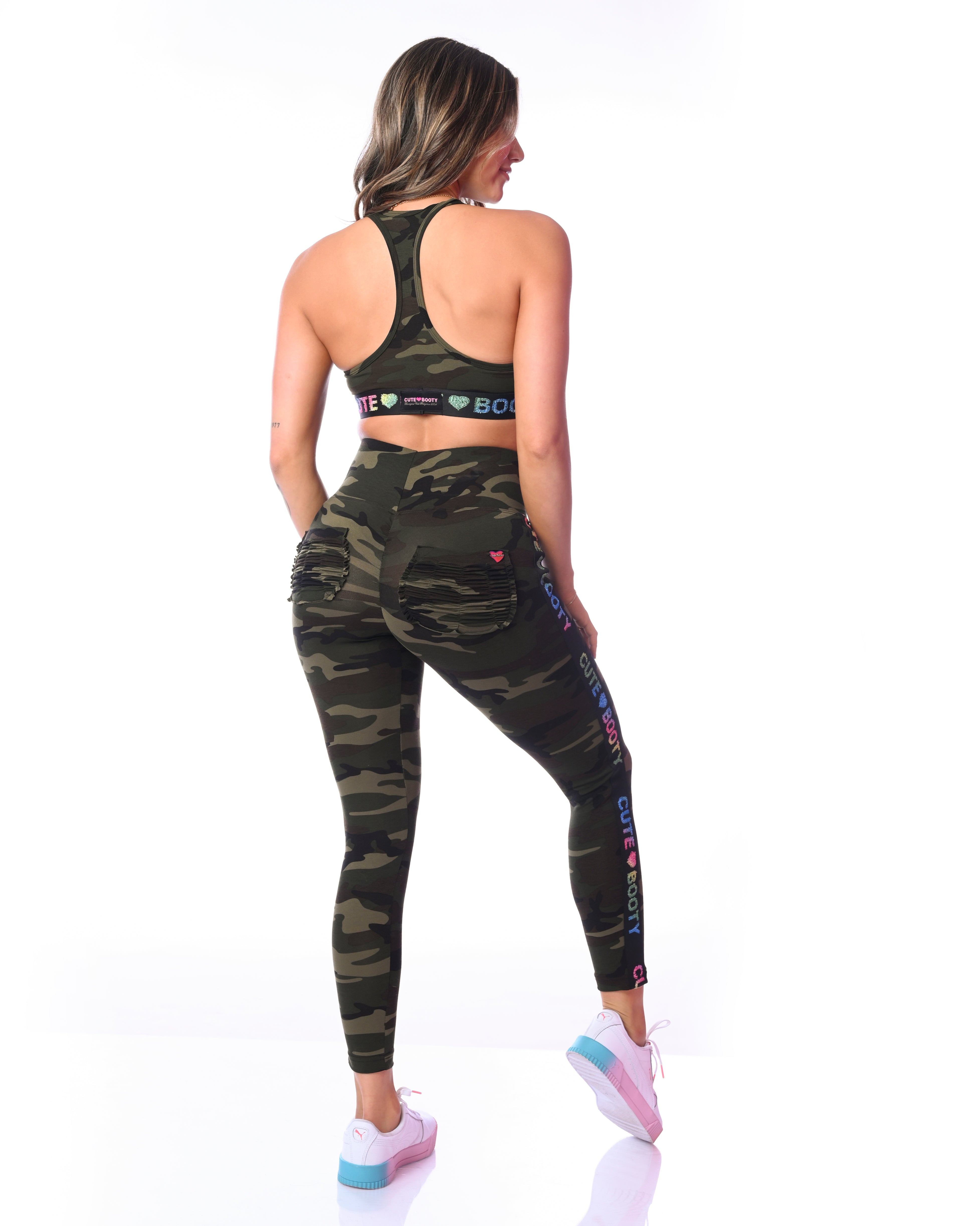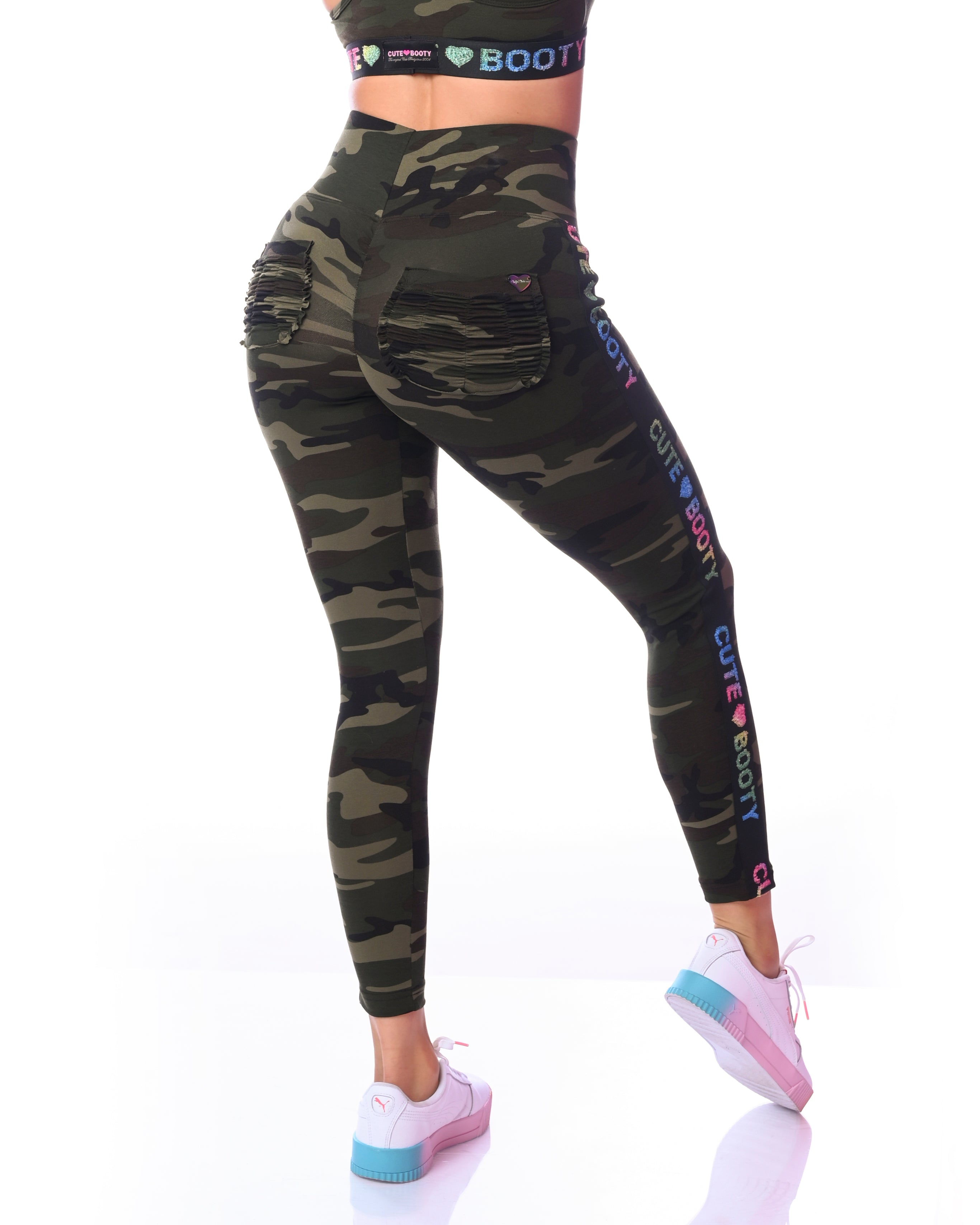 - Fabric Colors: Camo Print-Army, Green, Brown w/Multi Colored Cute Booty Logo