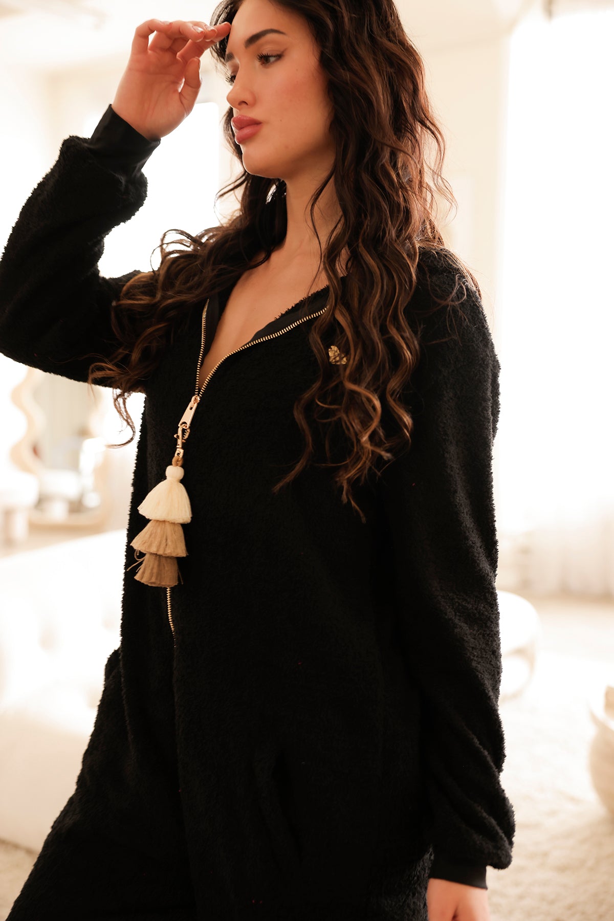 • Hardware: Center Front Gold Zipper & Removable 3 Tone Tassel
