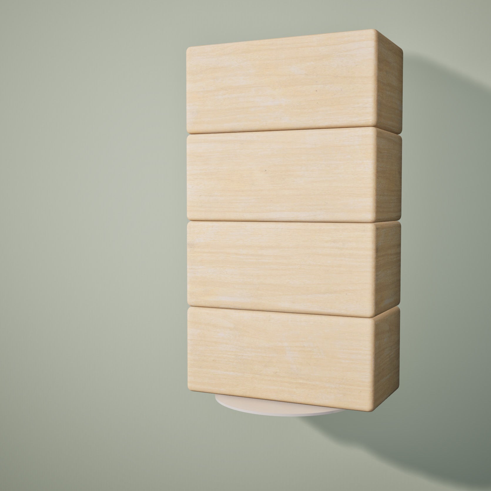 The Yoke Floating Wall Bracket accommodates four 4" yoga blocks or five 3" yoga blocks neatly stacked in one convenient and inspiring place.
